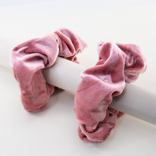 Elastice de păr tip scrunchie cu textură catifelată, grosime 5 cm, set 2 buc - Roz