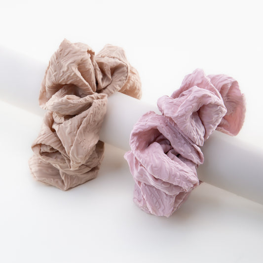 Elastice de păr tip scrunchie Earth Tones, grosime 5 cm, set 2 buc - Roz, Crem