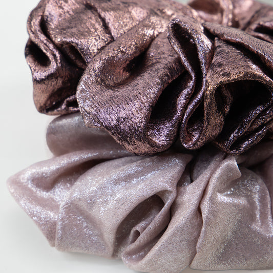 Elastice de păr tip scrunchie Shiny Mood cu efect lucios, grosime 5 cm, set 2 buc - Roz