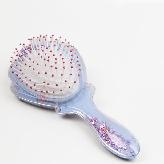 Perie păr copii cu formă de scoică, transparent cu confetti - Pisicuta Fericita