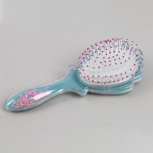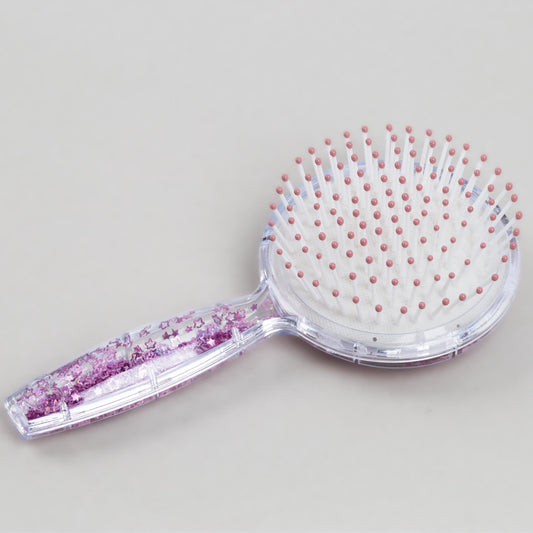 Perie pentru descurcat părul copii cu formă de stea, transparent cu confetti - Unicorn Somnoros