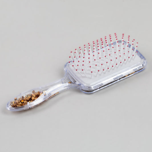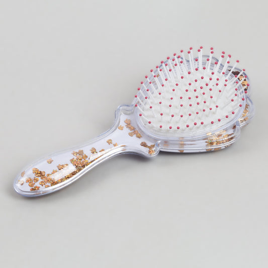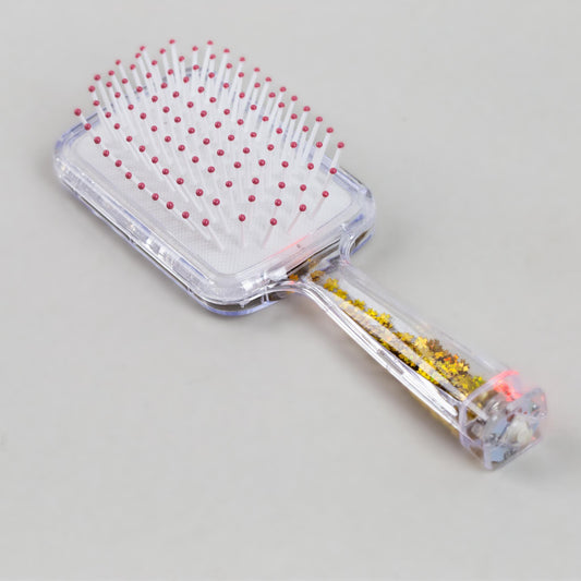 Perie păr copii cu leduri pătrată, transparent cu confetti - Auriu Beauty