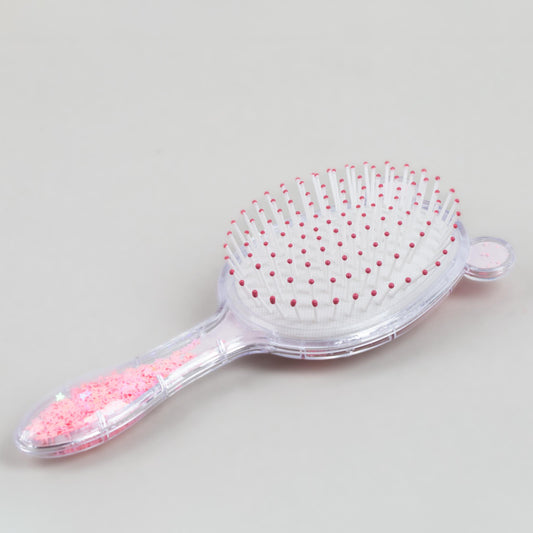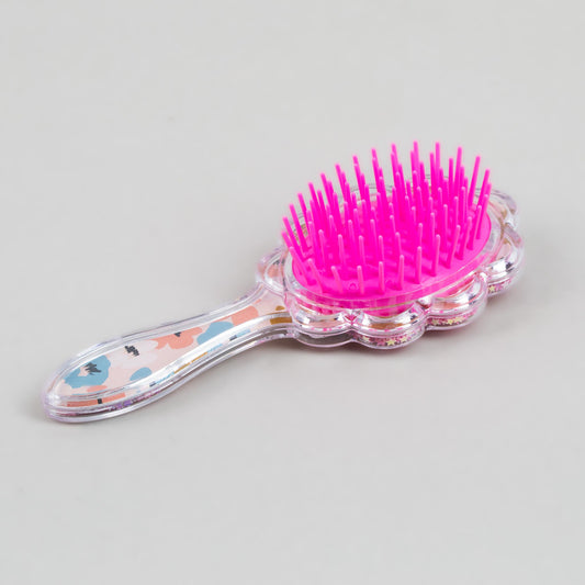 Perie pentru descurcat părul copii cu formă de lăbuță răsfațată, transparent cu confetti - Roz