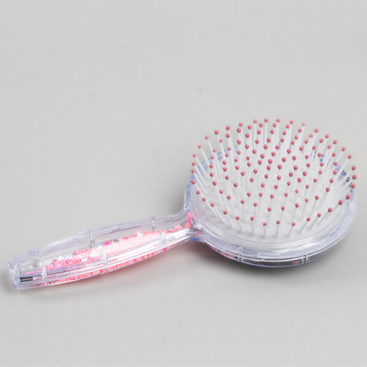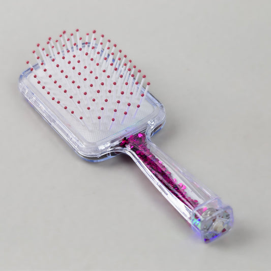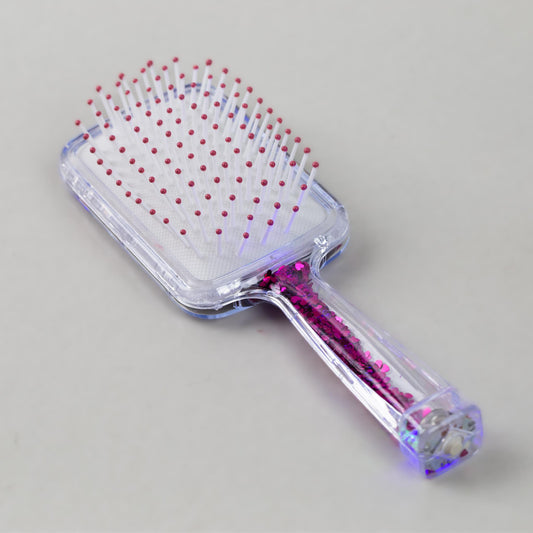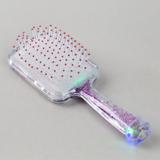 Perie păr copii cu leduri pătrată, transparent cu confetti - Roz Make Up