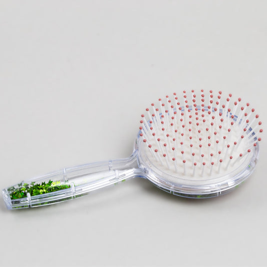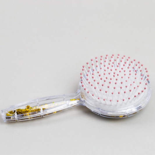 Perie păr copii cu formă rotundă, transparent cu confetti - Pisicuta Fericita