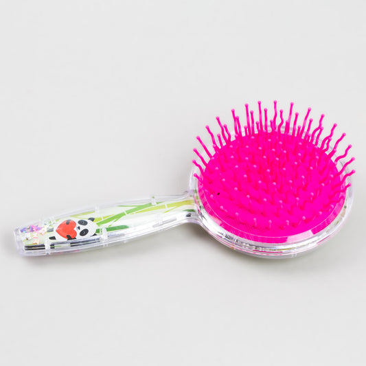 Perie păr copii cu formă rotundă, transparent cu confetti - Panda Lover