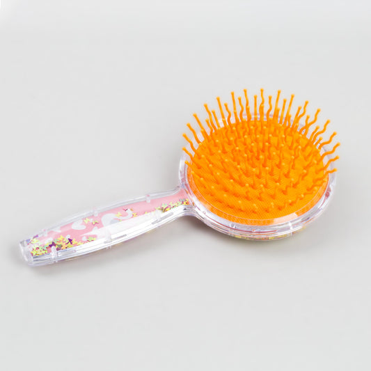 Perie pentru descurcat părul copii ovală, transparent cu confetti - Sparkle Unicorn