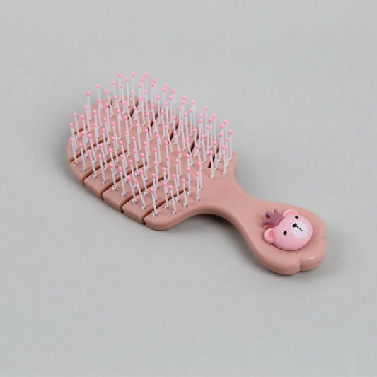 Perie păr copii cu perforații și figurină cu ursuleț - Roz