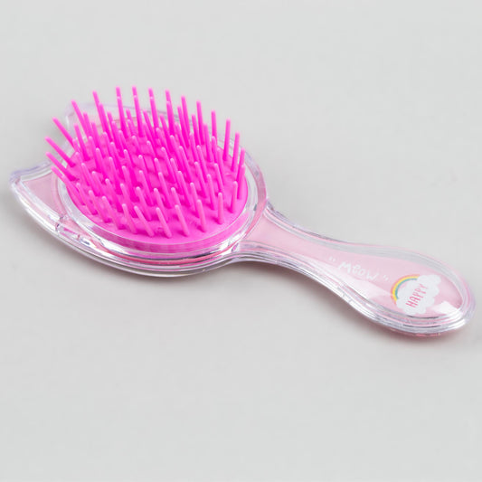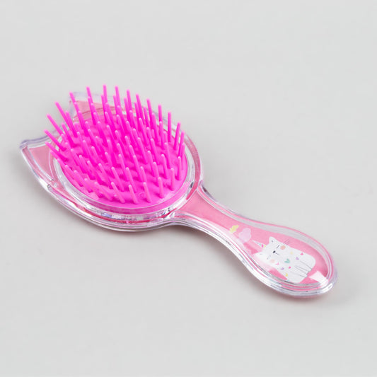Perie pentru descurcat părul copii cu formă de pisicuță, transparent cu confetti - Happy Cat