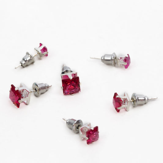 Set cercei mici cu pietre pătrate, 3 perechi - Magenta