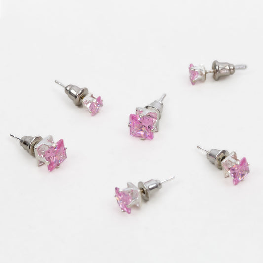 Set cercei mici cu pietre pătrate, 3 perechi - Roz Deschis