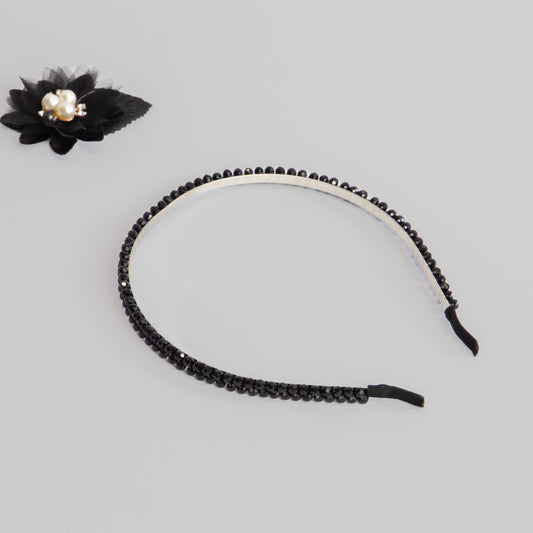 Cordelută de păr subțire cu pietre sparkling touch - Negru