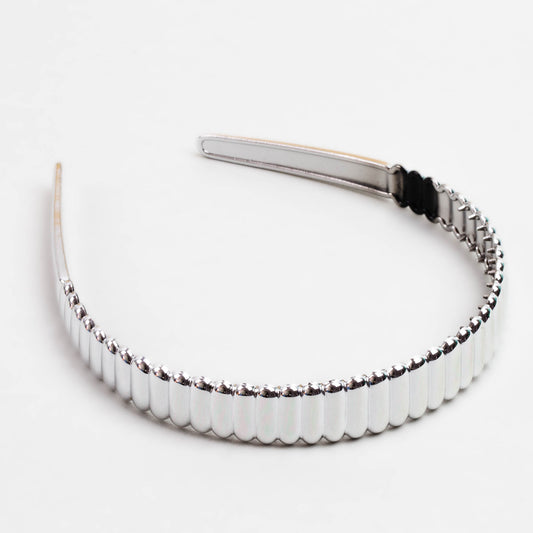Cordeluță de păr subțire cu striații simetrice și textură lucioasă - Argintiu