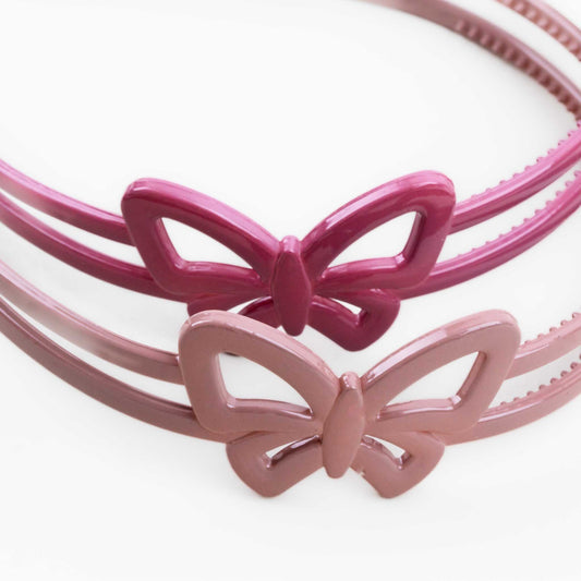 Cordeluțe de păr în strat dublu cu formă de fluture și textură lucioasă, set 2 buc - Roz Prăfuit