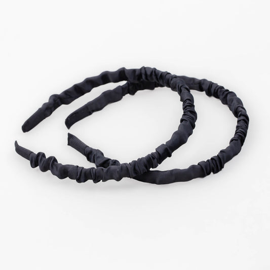 Cordeluțe de păr subțiri cu material încrețit din satin, set 2 buc - Negru