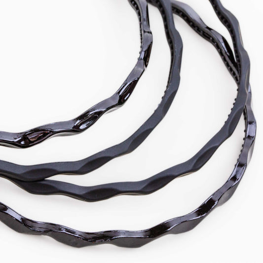 Cordeluțe de păr subțiri cu forme diverse și textură lucioasă, set 4 buc - Negru