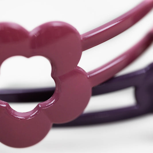 Cordeluțe de păr subțiri duble cu formă de floare, set 2 buc - Mov, Roz