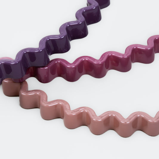 Cordeluțe subțiri cu ondulații simetrice și textură lucioasă, set 3 buc - Roz, Mov