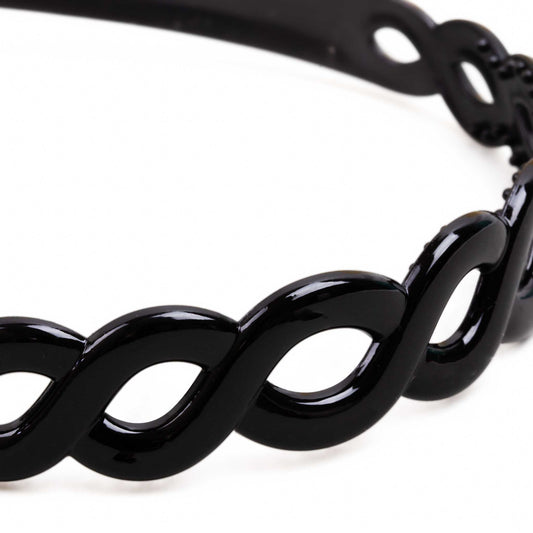 Cordeluță de păr subțire cu formă împletită și textură lucioasă - Negru