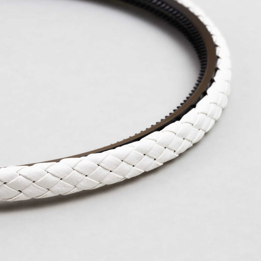 Cordeluță de păr subțire cu textură împletită din piele ecologică - Alb