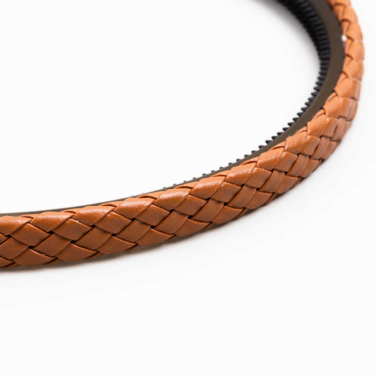 Cordeluță de păr subțire cu textură împletită din piele ecologică - Maro