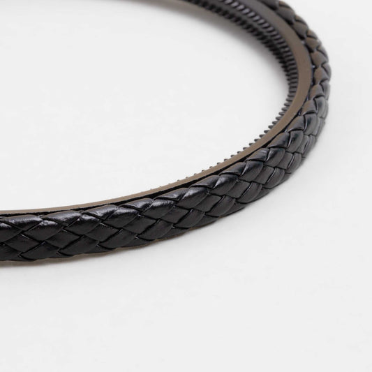 Cordeluță de păr subțire cu textură împletită din piele ecologică - Negru