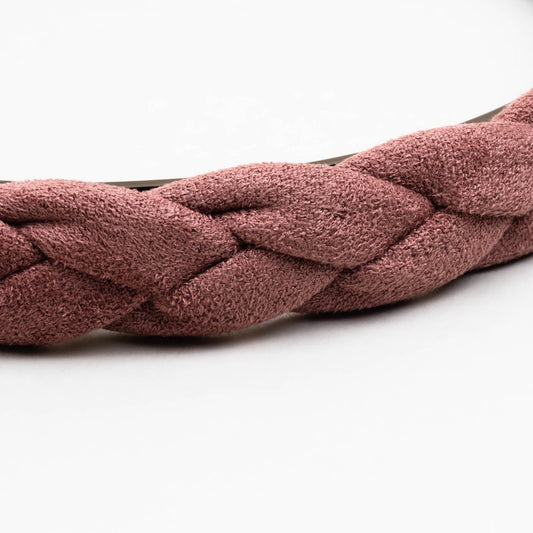 Cordeluță de păr subțire cu textură împletită din piele întoarsă ecologică - Roz Pudrat