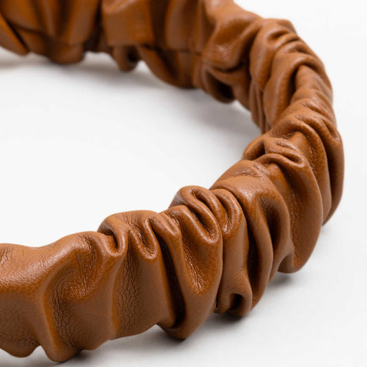 Cordeluță de păr subțire cu textură încrețită din piele ecologică - Caramel