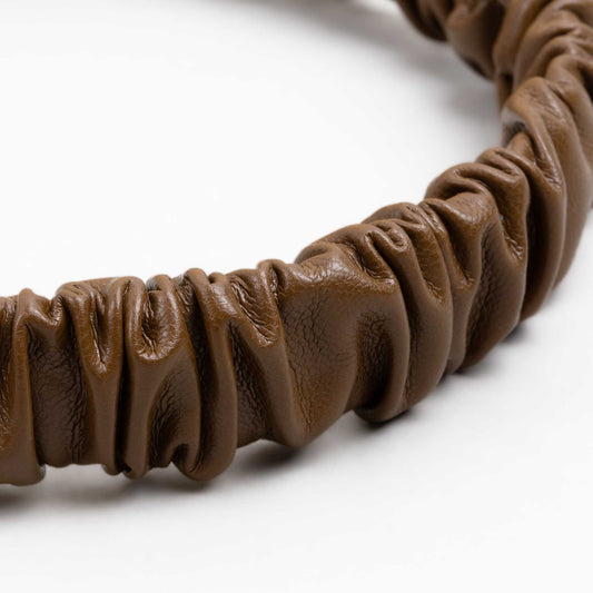 Cordeluță de păr subțire cu textură încrețită din piele ecologică - Maro