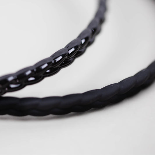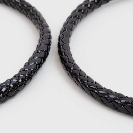 Cordeluțe de păr subțiri cu finisaj cilindric și textură împletită din piele ecologică, set 2 buc - Negru
