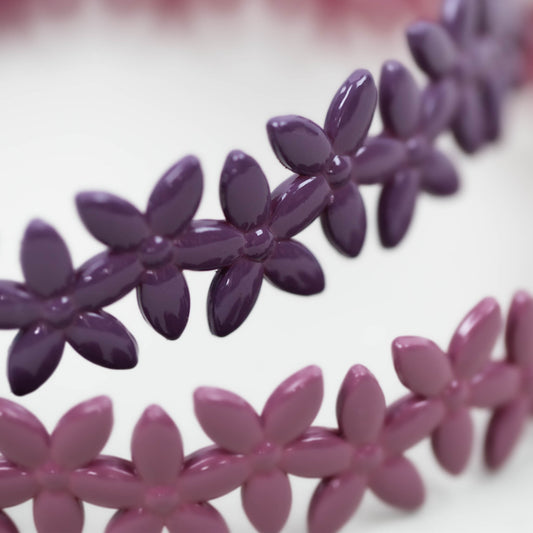 Cordeluțe de păr subțiri cu forme de flori și textură lucioasă, set 2 buc - Mov, Roz
