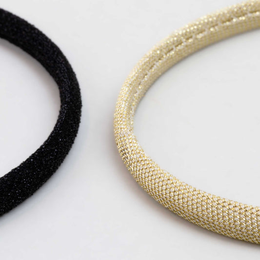 Cordeluțe de păr subțiri simple, material textil cu sclipici, set 2 buc - Auriu, Negru