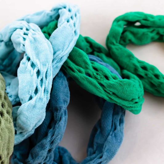 Elastice de păr comode cu textură încrețită cu perforații, grosime 1,3 cm, set 8 buc - Verde, Albastru