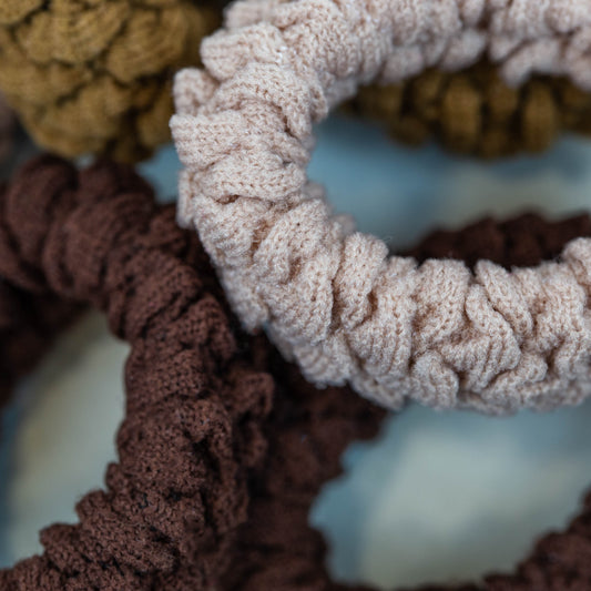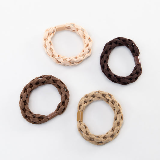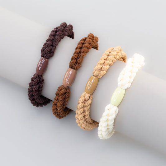 Elastice de păr cu aspect croșetat, grosime 1 cm, set 4 buc - Maro