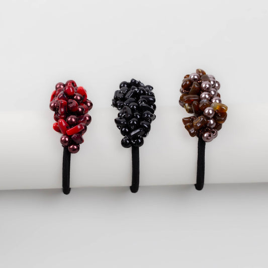Elastice de păr cu biluțe și pietre mici, grosime 0,5 cm, set 3 buc - Rich Mix