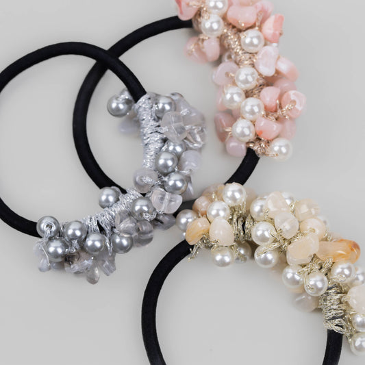 Elastice de păr cu biluțe și pietre mici, grosime 0,5 cm, set 3 buc - Castel Mix