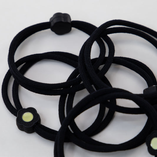 Elastice de păr cu două straturi și floare mică, grosime 0,5 cm, set 5 buc - Negru