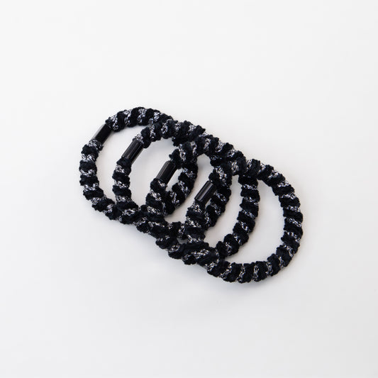 Elastice de păr cu textură răsucită, grosime 1 cm, set 4 buc - Negru & Argintiu