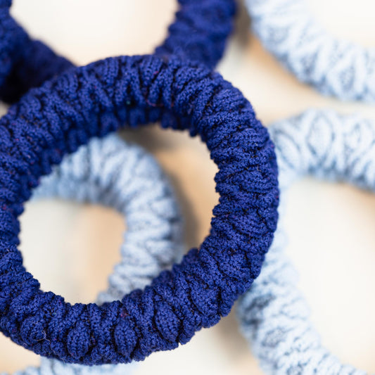 Elastice de păr rezistente cu textură încrețită, grosime 1,5 cm, set 6 buc - Albastru