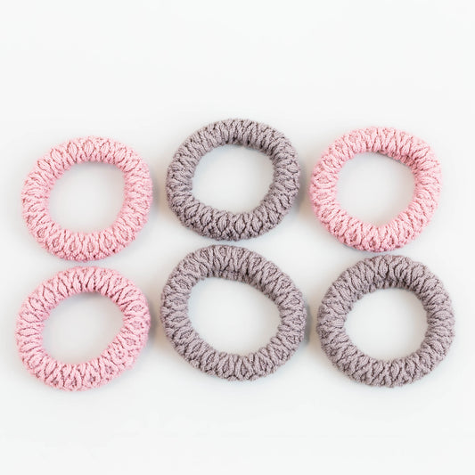 Elastice de păr rezistente cu textură încrețită, grosime 1,5 cm, set 6 buc - Roz, Bej