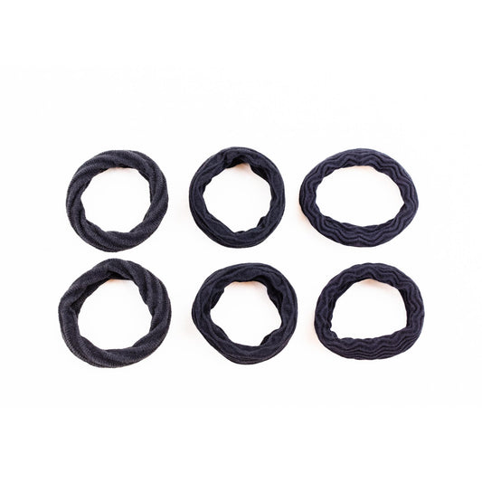 Elastice de păr rezistente cu texturi diverse, grosime 1,5 cm, set 6 buc - Negru
