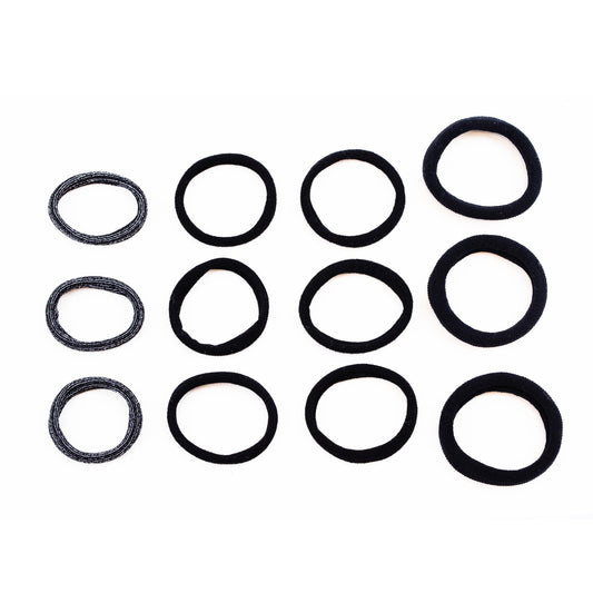 Elastice de păr simple cu mărimi diverse, grosime 0,5-1 cm, set 12 buc - Negru Mix