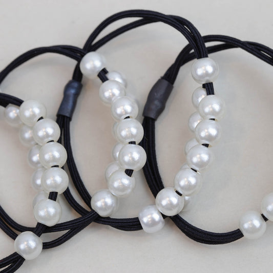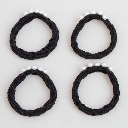 Elastice de păr subțiri cu perle, grosime 0,5 + 0,8 cm, set 4 buc - Negru, Alb