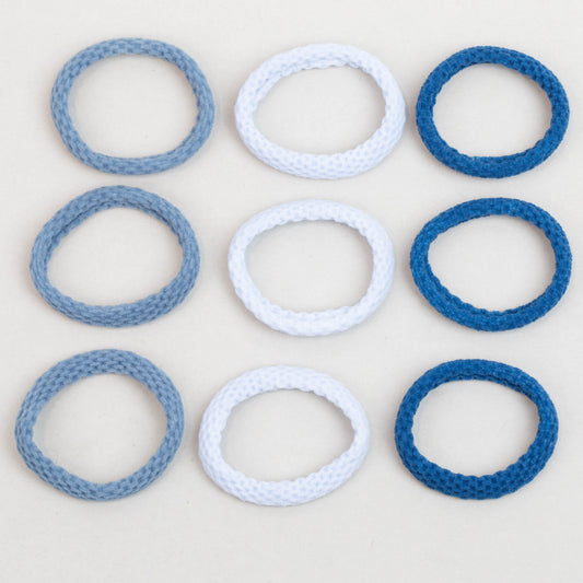 Elastice de păr simple cu textură împletită, grosime 0,7 cm, set 9 buc - Albastru Mix