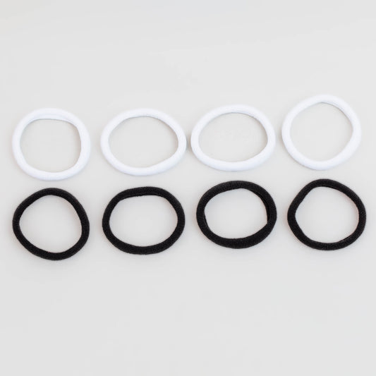Elastice de păr simple și comode, grosime 0,6 cm, set 8 buc - Negru, Alb