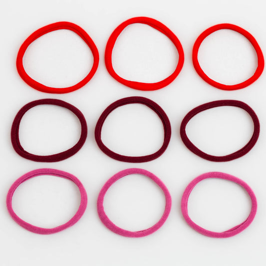 Elastice de păr simple și comode, grosime 0,7 cm, set 9 buc - Roșu Mix
