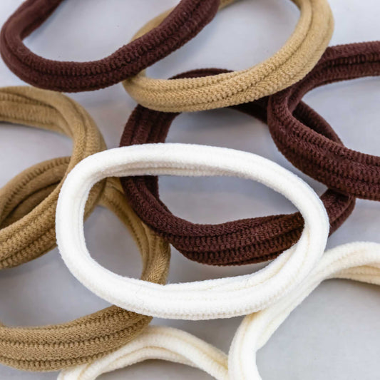 Elastice de păr simple și rezistente cu striații, grosime 1 cm, set 9 buc - Caffe Latte Mix