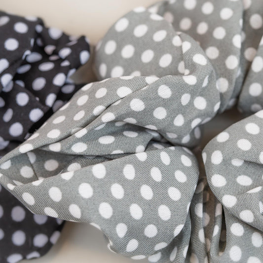 Elastice de păr tip scrunchie cu buline, grosime 4,5 cm, set 2 buc - Negru, Gri