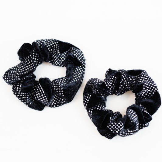 Elastice de păr tip scrunchie cu textură de catifea și sclipici, grosime 3,5 cm, set 2 buc - Negru
