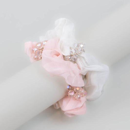 Elastice de păr tip scrunchie cu textură delicată și pietre, grosime 3 cm, set 2 buc - Angel Mix